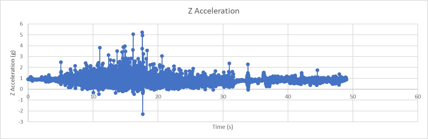 Its a bumpy ride as shown by the Z acceleration peaking at 5g.